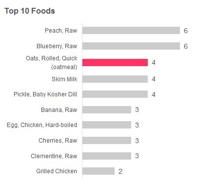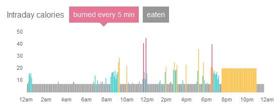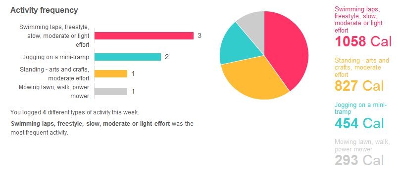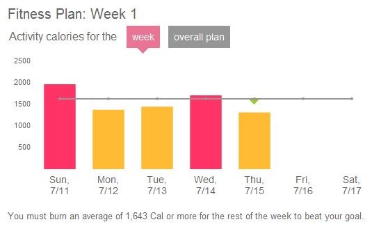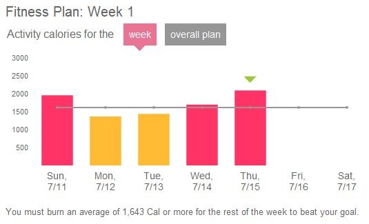 and drink. This table shows the top foods I’ve been eating. Peach count was driven by a visit to a farmers market last Sunday – they were awesome. The red for oatmeal means it was the highest calorie count for the week. Lots of fruit, pickles (low cal plus a bit of salt and crunch) and chicken. I’ve been looking at fruit to make sure I get the best kind – at the end of the day sugar is sugar and carbs are carbs. Still goodness as this is the best kind to eat. From an activity standpoint, I am working on a constantly increasing level. This week I exceeded my goals and will continue to do this week over